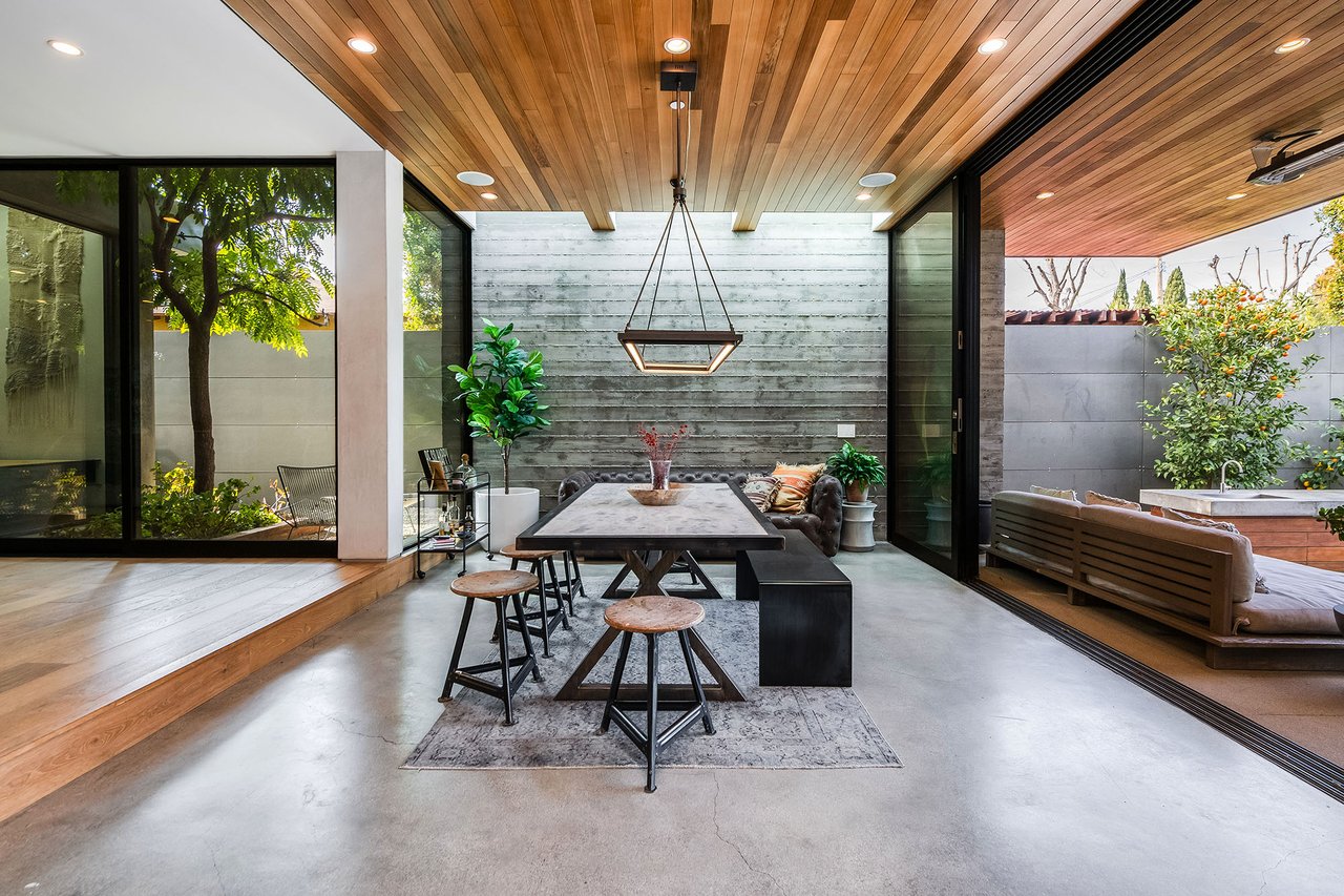 This stunning Venice estate masterfully combines the perfect balance of modern luxury, comfort and privacy. Built in 2016, this spacious home was designed for seamless indoor-outdoor living, featuring high ceilings, expansive windows, and floor-to-ceiling sliding glass doors that welcome the exterior spaces and fill the home with natural light. Elegant finishes, including concrete and oak flooring, plastered walls, and custom cabinetry, add to the sophisticated ambiance. The primary suite is a private retreat with a walk-in closet, a lavish bathroom, and its own private deck. Outside, enjoy California living at its finest with a heated in-ground pool and spa, a fire pit, and a barbecue area, perfect for relaxation and entertaining. There are three additional generously-sized bedrooms, each with their own en-suite bathroom. The home also features a two-car detached garage and modern security features. A guesthouse with its own bath and private deck above the garage offers additional space for living, work, or leisure. Situated in the vibrant Venice neighborhood, close to dining, attractions, and entertainment, this home is the ultimate blend of indulgence and convenience.